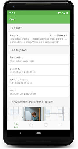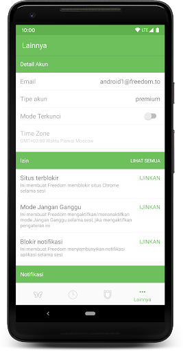 Sehingga anda biasa tanpa diganggu, anda pasti teringin untuk mengakses permainan atau aplikasi sosial anda. Masuk Mod Dikunci. Ia memfokuskan anda. Hentikan tabiat dan ketagihan paling kompulsif. Untuk mencapai ini, Freedom meminta kebenaran pentadbir peranti untuk membantu mencegah penghapusan aplikasi.