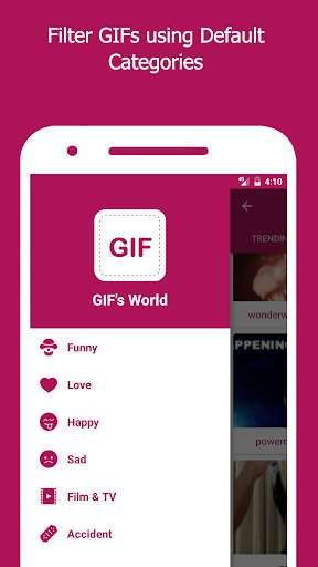 Dengan Gif World, anda boleh memuat turun GIF kegemaran anda dengan mudah ke peranti anda dan dengan serta -merta berkongsi dengan rakan dan keluarga di media sosial, aplikasi pemesejan, atau di mana sahaja yang anda mahukan!