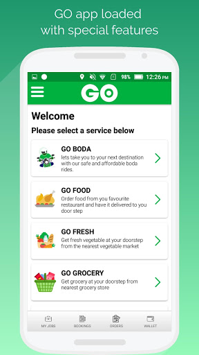 The GO App now lays before you a variety of services: for quick transport choose GO Boda to take you places with a safe and secure ride. You can now cut your trips to the market with GO Fresh for latest stock from the farmer. We all get hungry at particular times of the day and in those times when you crave for savoury bites, click GO Food to get quick deliveries. Do you need fresh market garden produce visit GO Grocery and scan an array of shelves for your pick.
