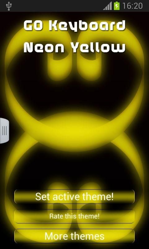 We have a superb yellow theme just for your phone: GO KEYBOARD NEON YELLOW! DOWNLOAD GO Keyboard Neon Yellow now and enjoy the cool graphics! - To install, just follow the 3 steps: open after downloading, press "Set as Active Theme" and select the theme from the following page! - The amazing HD screenshots we added will show you just how great this theme will look on your phone keyboard! - This theme uses GO Keyboard, so if you do not have it installed, you will be redirected to a download page! - The menus for this theme come with 48 different language translations! Take the time to RATE and COMMENT after you install, your opinion will help us improve our work! And do not hesitate to contact us at treicraiapps@gmail.com with any suggestions or questions you have! This theme uses a free font which can be found at http://fontfabric.com/age-free-font/ To support further development of high quality themes, this app may show some ads that do not interfere with the app's functionality.