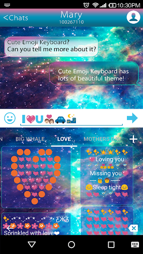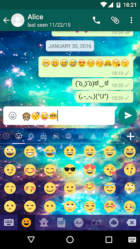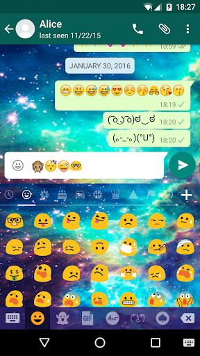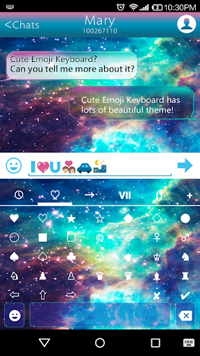Star Galaxy Theme for a free, smart and colorful Emoji Keyboard with animated GIFs, Stickers, Stylish Themes, Emoji Art, etc.