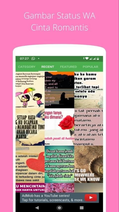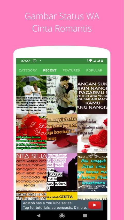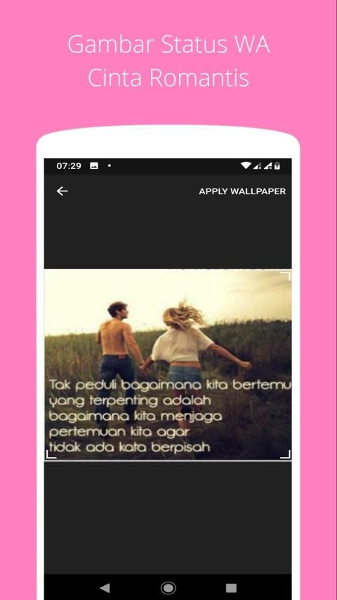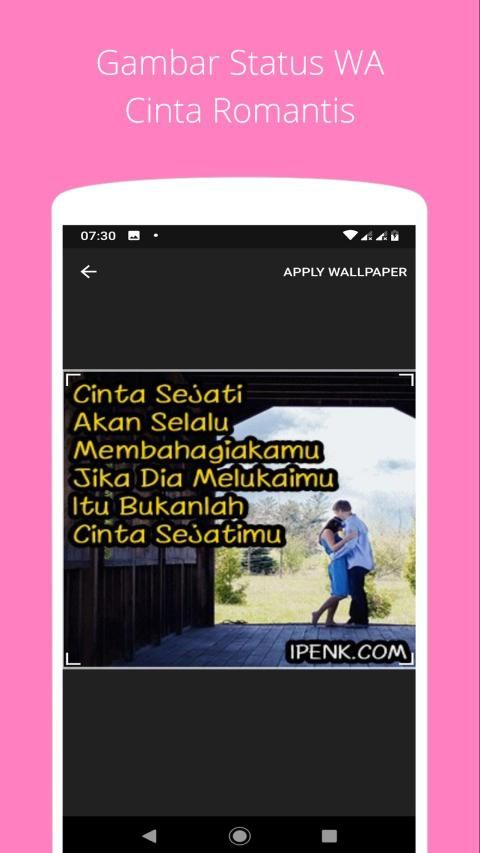 Ada diantara kamu butuh inspirasi mengenai cinta? Atau hal-hal berbau romantic? Kalo iya, berarti kamu perlu download aplikasi Gambar Status WA Cinta Romantis. Aplikasi ini memuat berbagai gambar DP kata cinta dan kata-kata cinta romantic yang bisa kamu download, dijadikan status WA, atau share ke teman-teman media social kamu.