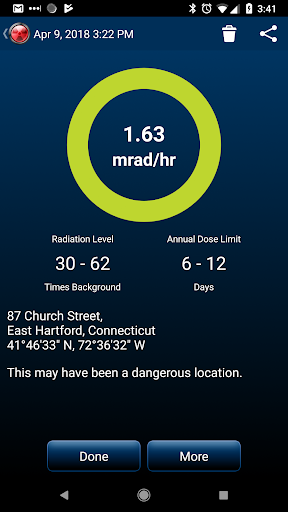 • Pemantauan automatik akan menggunakan ~ 1-5% bateri anda, tetapi dapat memberi amaran kepada anda akan radiasi walaupun tidak menggunakan Aplikasi.