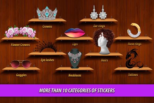 Change your look with stylish hairstyles, flower crowns, eye lashes, necklaces, tattoos etc with Girls Make up Editor. Hair Style changing for girls gives you a chance to edit any face smoothly and stylish hair. Girls Make up Editor provides latest collection of stylish decoration stickers and so on.