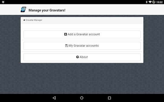 Gravatar Manager is an application for Android which makes it easy to manage your gravatars directly on your smartphone or tablet. Instead of connecting to the gravatar website, you can simply use this application to handle your different avatars and email addresses.