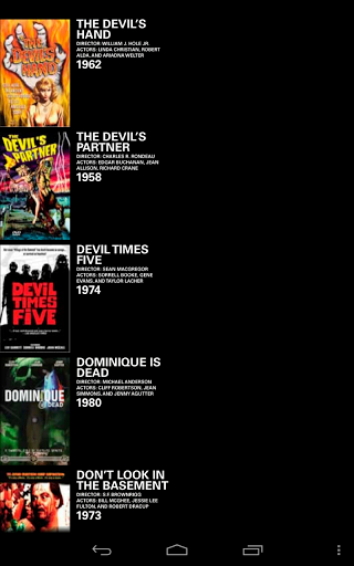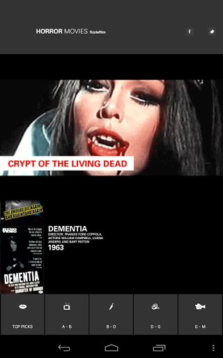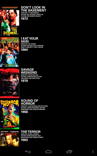 A huge selection of Horror movies that stream directly to your Android device. These horror flicks are now at your fingertips, streaming over your cellular network and Wi-Fi — a strong connection is necessary for fast downloading speed. This app is sure to be a favorite with some of the most desirable actors, actresses, and directors of the last century. Features:▪ Stream over a 100 Free Horror movies to your Android devices▪ Simple, modern, and priceless film archive, which fits in your pocket.▪ To navigate just swipe up and down the movie list.▪ Browse each genre by tapping icon-buttons in tab bar.▪ Updates of movies▪ Watch in portrait or landscape▪ Vintage poster art of movies▪ Free Movies▪ Lots of Monsters▪ Classic Movies▪ Retro FilmsTimeless actors, actresses, and directors:★ Frightening Horror Stars ★ Bela Lugosi, Boris Karloff, Lon Chaney, Vincent Price, and more!★ Daring Directors ★ George Romero, Alfred Hitchcock, Francis Ford Coppola, and more.★ Horror Movies ★ Night of the Living Dead, Nosferatu, Frankenstein, Zombies, Vampires, and more.feed backTell us what you think, we would love to hear from you. If you would like to send your ideas on existing movies or new movies to add, just let us know, but in the meantime lay back, relax, and enjoy.SupportIf you have any questions or need help just email us at info@fizzlefilm.com.Movie information All movies contained within the fizzlefilm application are public domain works as classified under creative commons. Movie qualityThe movies are not DVD quality, but they are rare and priceless. Also, some of these films are silent or the sound is not a high quality Most of these films are vintage and only seen here on Fizzlefilm!The Horror Movies app is the most extensive archive of scary movies in the google Play Store.Horror Movies - Free Movies app - is a scary movie archive in your pocket!