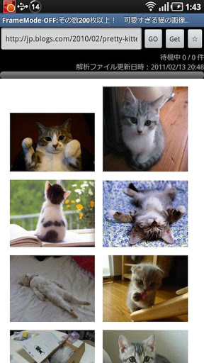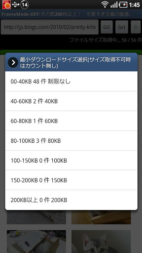 Ear work to save every single anymore This is your tool for that.This application is a web site pictures and videos, regular expression parsing HTML, you can save it at once. Press and hold images or something, it can be downloaded directly.Folder name is the title of the website when you save this application.When the webpage has frames, you can make the frame mode turn ON and click the link.Displays the total number of files found in each size when analysis is completeOn configuration or file selection screen, you can choose the smallest size that you want to download.Pressing the back key will process cancel when the selection screen is visible,This app can receive a share URL from other browsers You can register,read,delete in the standard browser bookmark Web Pages can be scroll you push The volume buttonsYou can exclude download by setting string in The NGWORDGesture in the bottom of the screen function works.1,By sliding over, go to the top of the website.2,By sliding down and go to the bottom of the website.3,By sliding to the left, navigate to the previous page.4,By sliding to the right, move forward one page.5,The press and hold to display the status bar.6,Each time you tap to move a little further down the websiteSimple to use1, Please access the website that you want to save images or other files.2, Push the 39;GET39; button.3, Then start the analyse the website, please wait4, Displays the total number of file each size if can find files on the website by analysis.5, From that screen, please select the smallest download size.6, Then start the download.7, Once downloaded, just go to that folder.Please locate the folder that you set