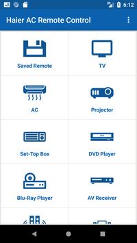 > Once configured Haier AC Remote Control can easily be found in “Saved Devices”.