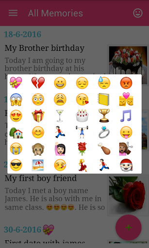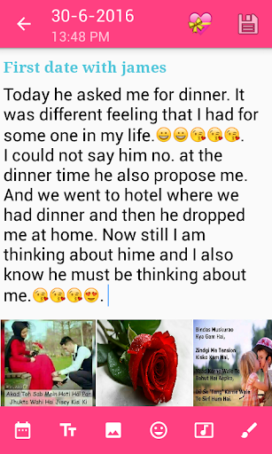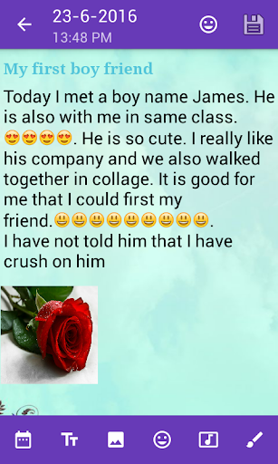 9. Attach emojies with each note to make it more beautiful. There is emoji keyboard available in diary.