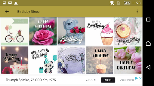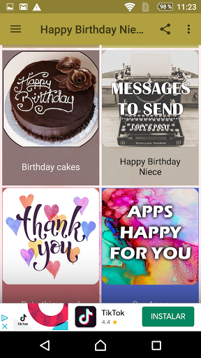 dalam aplikasi yang anda boleh Cari imej yang indah untuk mengucapkan tahniah pada hari lahirnya, frasa untuk menyalin dan tampal jika anda tidak begitu terinspirasi atau tidak tahu bagaimana untuk memberitahunya betapa gembiranya anda untuk hari lahirnya, imej kek dan banyak lagi. Jangan tunggu lagi untuk mengetahui.