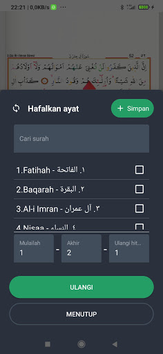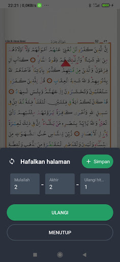 5.Anda boleh mengulangi ayat, surat, dan halaman.