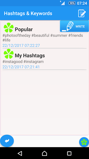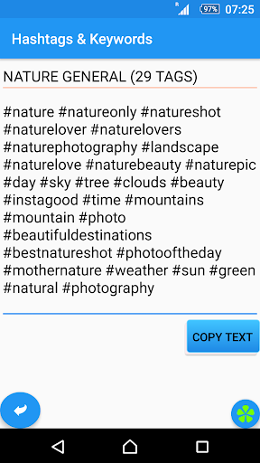 * Choose a hashtag or keyword name, tap "Copy" button paste necessary hashtags, keywords on your pictures, videos.