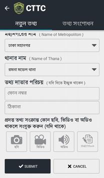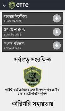 Counter Terrorism & Transnational Crime Unit (CT) is a newly inaugurated specialized unit of Dhaka Metropolitan Police of Bangladesh Police. From the very beginning the unit has started desperate activities against terrorism, militancy, cyber crime, transnational crime, bomb/explosives/arms and other criteria of counter terrorism. The unit has launched an official mobile application for the citizen, expatriates & all spheres of people who want to provide intelligence or want to communicate/ cooperate the force to stay one step ahead than the militants. Download he mobile application on your cell phone & share your views/information/opinion to CT.