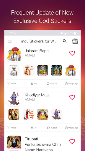 Kami mempunyai kategori pelekat Tuhan Hindu untuk Lord Siva, Ganesha, Hanuman, Krishna,Lakshmi, Rama, Venkateshwara, Murugan, Ayyappan dan anda boleh menambahkannya ke WhatsApp anda dan mula menghantarnya.Aplikasi ini direka semula sepenuhnya dan kami kini mempunyai pelbagai festival Hindu yang baru seperti Diwali, Sankranti, Bhogi, Pongal, Karthigai Deepam, Thai PUSAM, Vasant Pachami, Maha Shivaratri, Holi, Rama Navami, Ugadi, Visa, Tahun Baru Tamil, Onam, KrishnaJANMAASHTAMI, Ganesh Chaturthi, Navaratri, Vijaya Dasami, Dasara dan hampir semua perayaan Hindu yang lain.Infact, kami telah memberikan anda pilihan untuk membuat dan menambah pek pelekat ke WhatsApp dan memuat naiknya ke pelayan dengan aplikasi ini.
