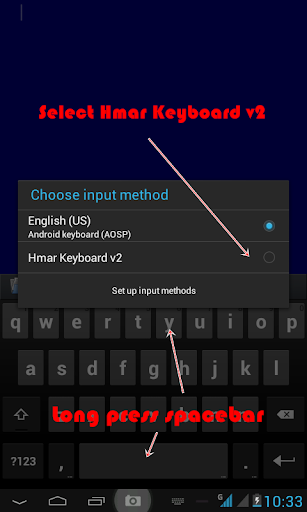 Settings ah fe la chun Language & Input> Select Hmar Keyboard. Thu inziek hung popup ata OK rawh.