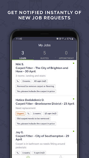 Homerun memudahkan profesional perkhidmatan tempatan untuk mengembangkan perniagaan mereka dengan memadankan dan menghantar peluang pekerjaan yang terdekat menggunakan data lokasi anda.