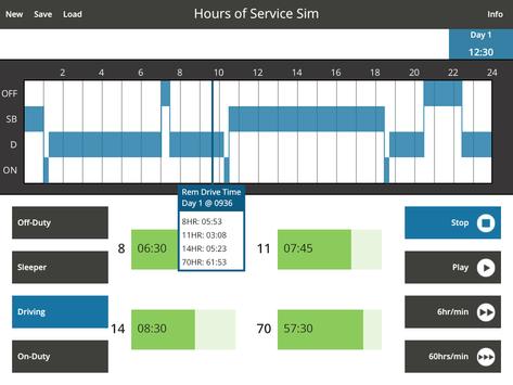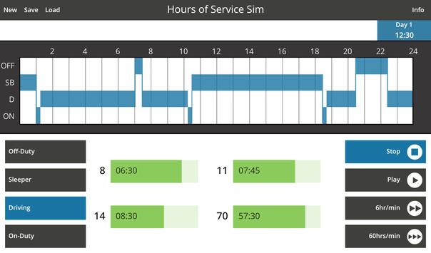 Hours of Service Sim is a learning tool to help commercial truck drivers learn Hours of Service rules.