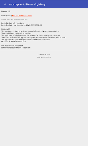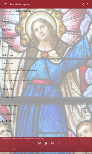 Aplikasi ini adalah senarai lagu-lagu utama Mary. Setiap lagu ini menyatakan pengabdian kepada Mary. Juga, lagu-lagu ini didasarkan daripada kata-kata beliau dari Kitab Suci. Kunci kepada lagu-lagu Marian, tentu saja, adalah untuk menghormati dia sebagai satu akan menghormati ibu sendiri.