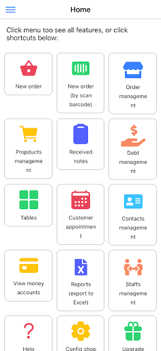 Membantu anda menjual, membuat pesanan, menguruskan inventori dan produk. Juga membantu anda membuat laporan penjualan dan inventori, eksport laporan tersebut ke Excel juga. Ia menggunakan teknologi cloud, jadi tidak kisah kehilangan data dan 100% percuma.