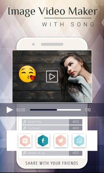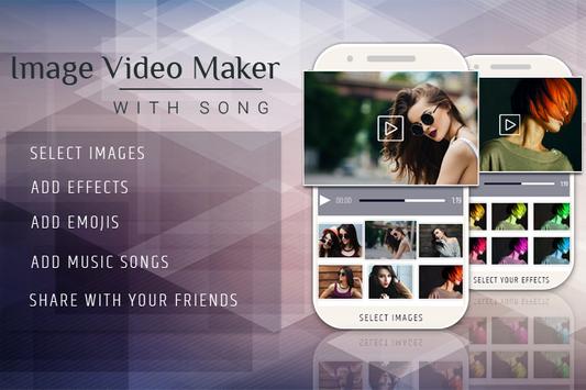 Image Video Maker with Song app making photo into slideshow with Song.. Image Video Maker with Song is the easy way to create, edit and share amazing Song videos, slideshows and stories with your photos, videos and free to add Song with video. This application have several steps, selecting Images, adding filters, text and Song finish your own video. You may select photo from camera and gallery. Also you arrange the photos in different order with the perfect background, Song and animation to create a video.
