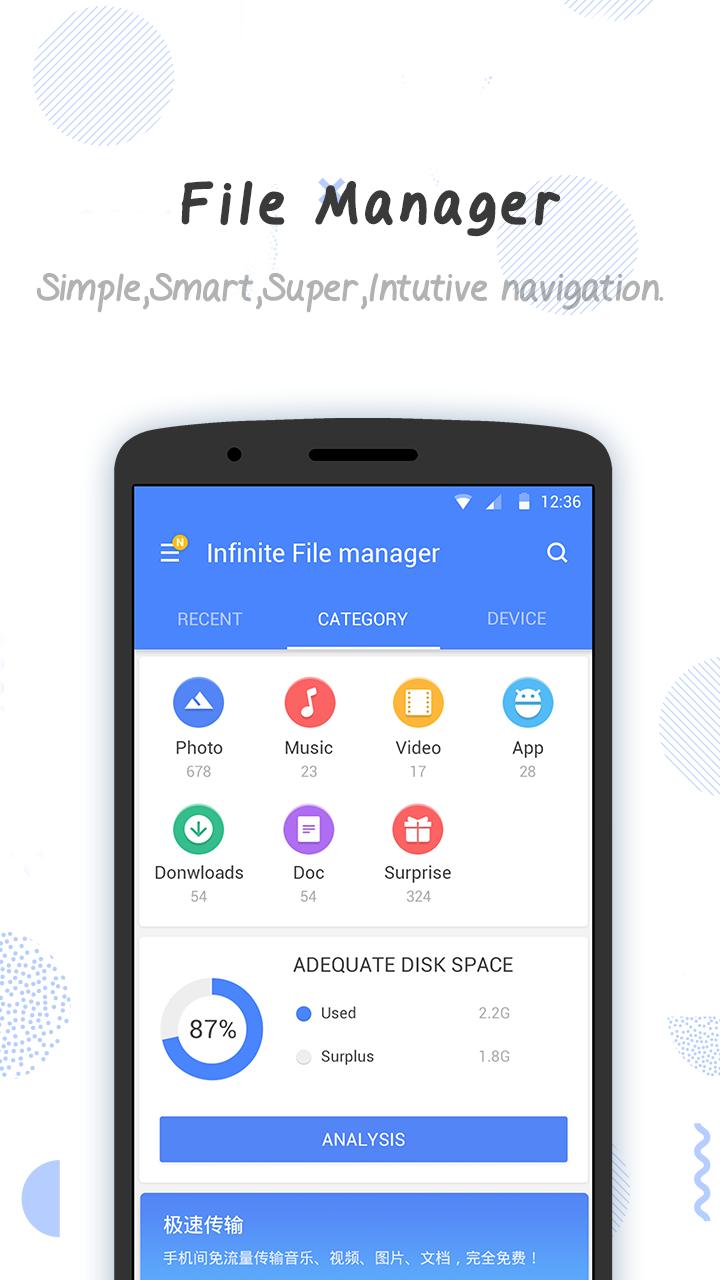 Small, simple, powerful, Infinite File Manager is one of the best file manager for Android who provides full-featured file management and transfer for Android. Even better, this pro file manager and explorer can help transfer files for Android through hotspot.