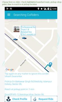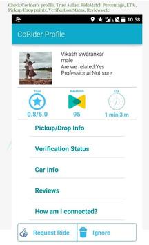 • TRUSTED DRIVER: Review trust,ride-match score, eta, professional status, your connection with him/her if any, of all en-route drivers and send ride request.