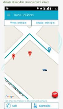No need to wait road side for pickup. You can live track car owner and reach to pickup point when he is nearby.