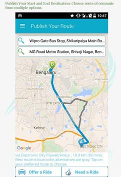 • Post your route with one tap whenever you are ready to leave, and offer a ride or request a ride.