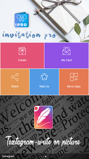 Invitation Card Maker Pro akan membantu anda sehingga anda mempunyai produk akhir di hadapan anda.Tunjukkan kreativiti anda kepada semua orang dan gunakan templat kad jemputan kami secara percuma. Aplikasi ini tersedia untuk sebarang majlis seperti 🎂 Hari Lahir 🎂, 👫 Perkahwinan 👫, 💍 Pertunangan 💍 dan 💐 Perasmian 💐