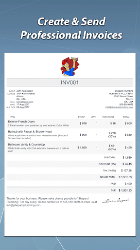 Aplikasi ini juga melacak semua pembayaran yang dibuat untuk invois. Anda juga boleh menandatangani invois atau anggaran pada peranti anda.