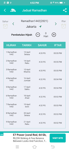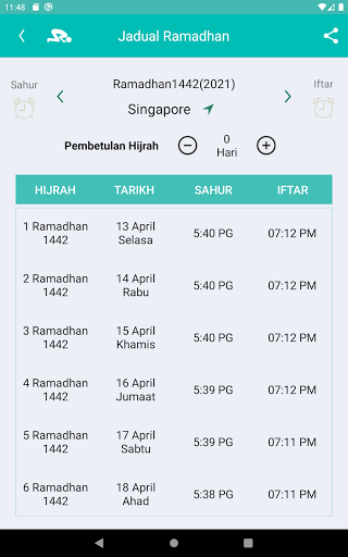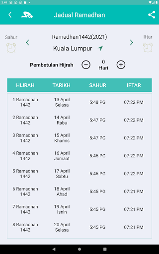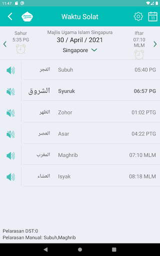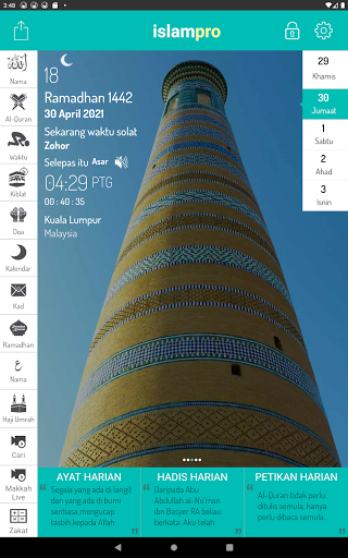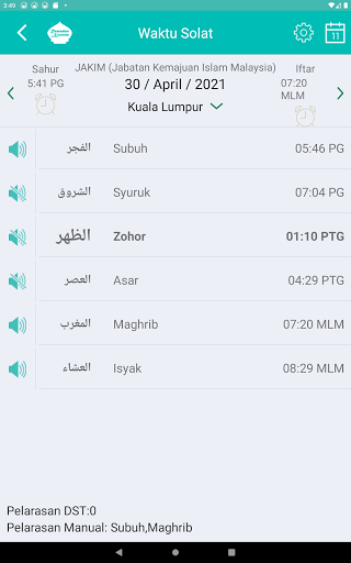 • Waktu Solat: - berdasarkan lokasi semasa anda atau tetapan yang dipilih