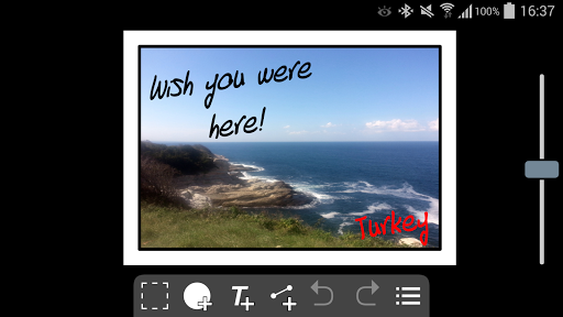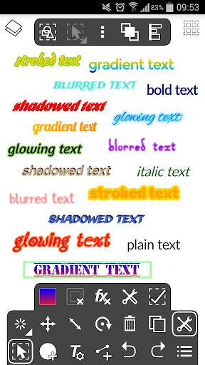 Alat Teks: Letakkan teks menggunakan sebilangan fon yang disertakan (atau dengan fon tersuai anda sendiri) menggunakan gaya Bold, Miring dan Garis bawah dengan penjajaran menegak dan mendatar termasuk justifikasi penuh.