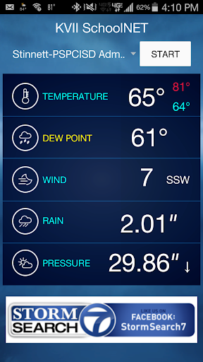 The biggest television owned weather station network in the country is now available via your mobile device! KVII-TV’s “SchoolNET” is now over 170 stations and continues to grow all the time! The weather stations measure temperature, humidity, dew point, wind speed and direction, wind chill, heat index, rainfall, rainfall rate, barometric pressure and more options that are soon to be added! You can follow along as the LIVE weather data flows from the ProNews 7 network into your phone! Included in this app are weather stations located throughout Texas, Oklahoma, New Mexico and Kansas. In addition to a dense network of weather stations in the TX and OK Panhandles and Eastern NM, we also have weather stations in the Lubbock, Midland and Abilene, TX, areas as well!