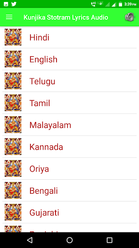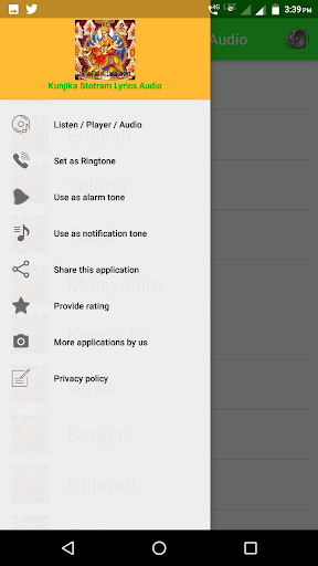 It has following features- 1.HD Audio with lyrics in all languages. 2.Set as alarm/notification tone. 3.Set as ringtone. 4.Play and pause button. 5.Mute button. 6.Forward and backward button. 7.seek bar.