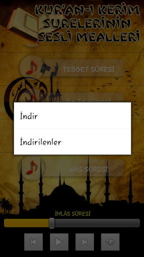 İndirmek istediğiniz surenin üzerine uzunca basıp açılan menuden "İndir" seçeneğini kullanarak indirebilirsiniz.