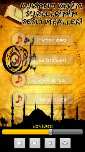 Kur-an'ı Kerim surelerinin meallerini dinleyip indirmek için hazırlanmış bir uygulamadır.