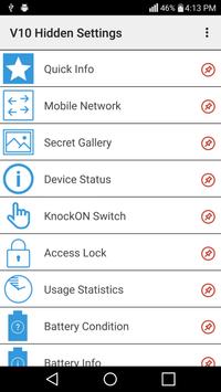 ★ Aplikasi ini membolehkan penggunaan tetapan tersembunyi LG V10 anda, seperti: