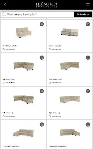 LHB Design Pro adalah alat reka bentuk yang hebat yang membolehkan pengguna memvisualisasikan dan membina pelapis mereka sendiri dalam bentuk 3D.Peralihan antara konfigurasi dan realiti tambahan dengan mudah untuk meletakkan perabot di rumah anda sendiri dalam masa nyata!Pilih bingkai, saiz, gaya lengan, alas, kemasan, bantal, bantal dan berjuta-juta kombinasi yang mungkin.Bina dan konfigurasikan bahagian anda sendiri.Pilih dari beribu-ribu kain, kulit, trim, wel dan rawatan dalam resolusi 4k yang cemerlang.Terokai pelbagai gaya perabot mewah dari Lexington, Tommy Bahama dan banyak lagi!Buat pertama kalinya, Lexington Home Brands meletakkan kuasa pereka dan kilang pakar kami ke tangan anda.