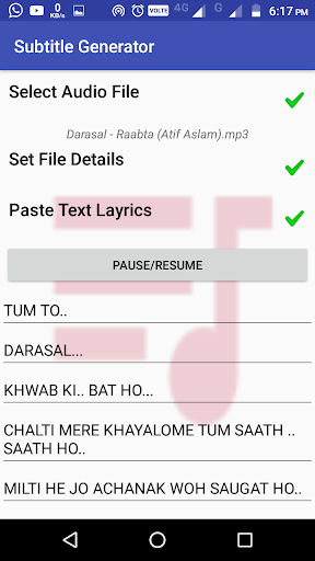 A simple app which plays an audio and generate subtitle file with the help of human interaction and provided Audio related information like Song Name , Artist Name , Album and Lyrics