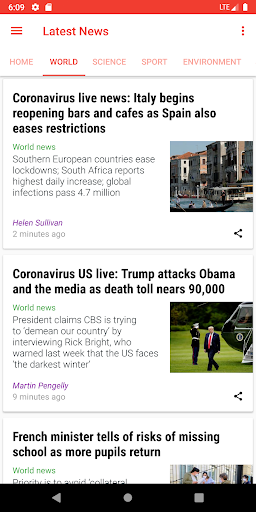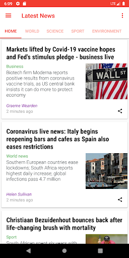 The World Latest News in English fetches data from the Guardian API.