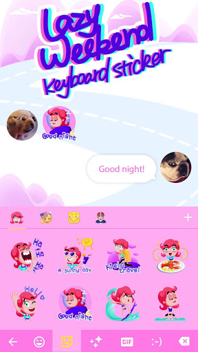 Lazy Weekend Keyboard Sticker contains a variety of beautiful & funny stickers. It makes your chatting funny and vivid.Do you like fancy and cute stickers?Lazy Weekend Keyboard Sticker is the best choose for you.Share your impressions with our stickers!