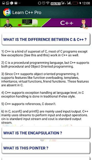 It is an inevitable fact that each and every individual who wants to attain software, application, and website related knowledge must get basic strong through c language and in this application Learn c pro, masses could get a detail scrutinization of ample of codes which will definitely assist users to attain complete tutorial of c language so that they can pursue their career towards this field and our professionals will soon upload tutorial on other languages related to computer field so that our users can get better experience and beneficial teaching techniques.