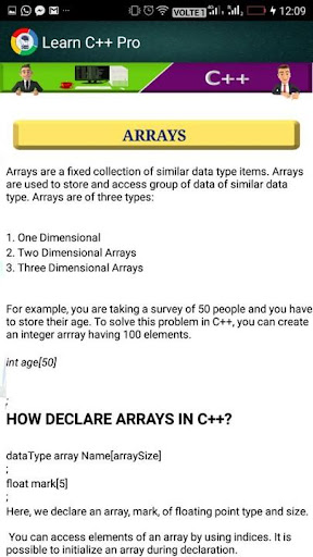 There are different codes in In learn c tutorial application and each and every code is subcategorized in an efficient way so that a user who will download this application can get better training on c language. This c tutorial will enable everyone to learn c easily and efficiently.