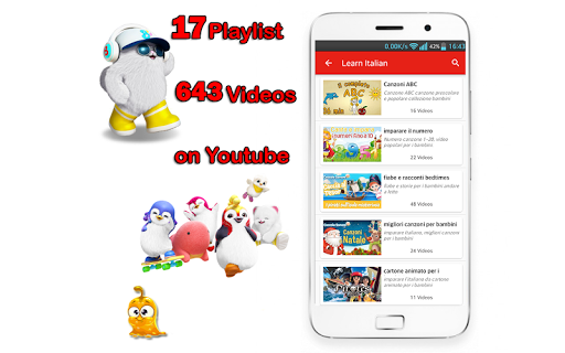* 640 Video YouTube Terbaik Penyusunan untuk anda belajar bahasa Itali.Video ini akan mendapat perhatian anak -anak anda kerana mereka lucu dan anak -anak anda tidak akan berusaha dengan begitu banyak untuk menikmatinya. YouTube dan hanya pautan kepada mereka untuk tujuan pendidikan.Kami tidak menunjukkan iklan pada video tersebut.Sekiranya anda melihat video anda dan tidak mahu kami memautkannya, sila e-mel kepada kami! (App.kidstube@gmail.com) Saya akan membuangnya!