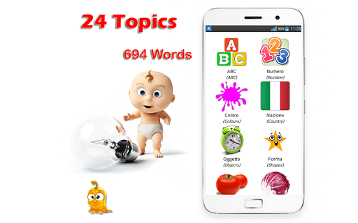 28 topik yang ada di sekitar kanak -kanak kehidupan sebenar, 768 perkataan Vocaburaly dengan bunyi dan imej dari mereka.Anda boleh menggunakan semuanya tanpa rangkaian, percuma.i> video Itali