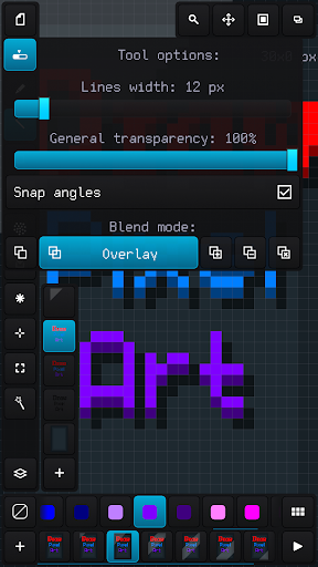 - Applying up to 6 color blend modes: normal, overlay, lighten, darken, multiply and add