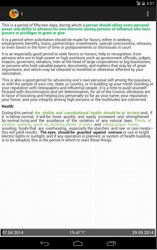 Dalam program ini, anda dapat melihat kedudukan anda dalam beberapa kitaran - sebagai bar kemajuan, permulaan / akhir kitaran.