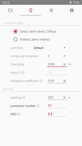 Calculation of lighting: * Method of the lumens * Luminaire distribution * Lux meter