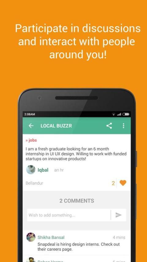 If you are new to a locality or exploring interesting things to do, this app is for you! Be it you looking for best places to shop or exploring new restaurants to dine - the local recommendations always come handy. Looking for freelance job opportunities, accommodation, travel tips or domestic help, check out what people around you have to say.