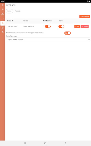 Aplikasi mesin logik menyediakan sambungan peranti Android ke mana -mana produk keluarga mesin logik.Ia membolehkan penggunaan Google Voice Control dan Push Notifications.